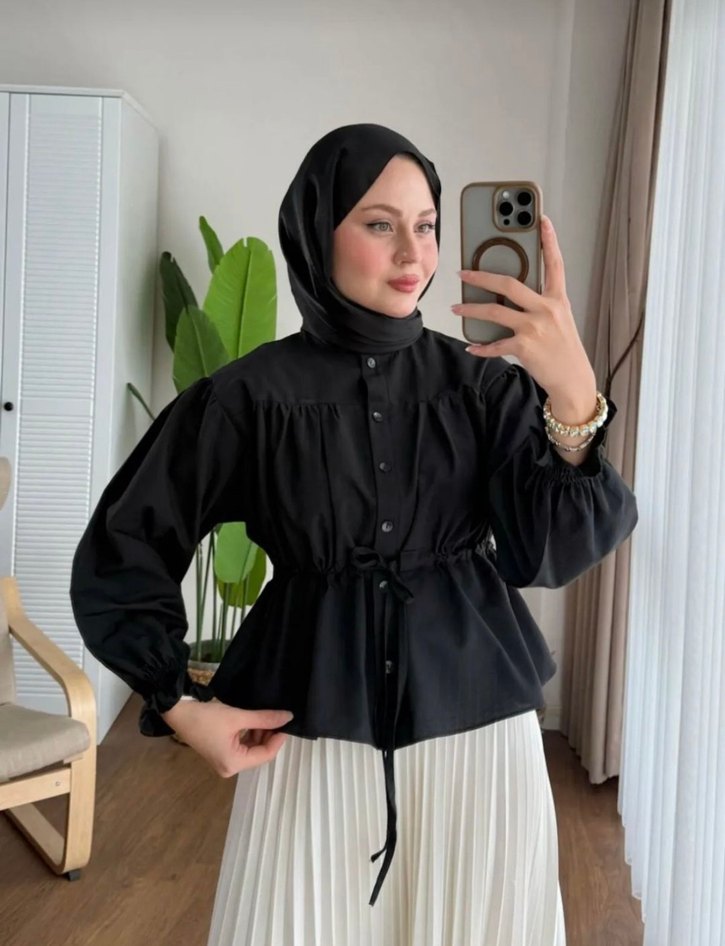 Siyah Bel Detaylı Uzun Kollu gömlek