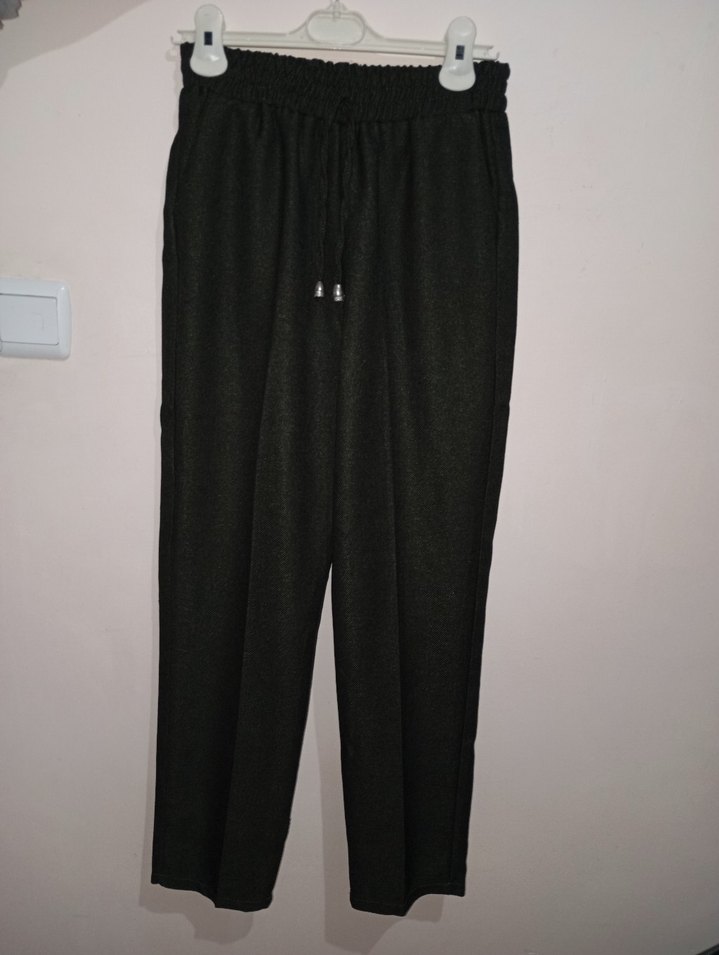 Siyah, beli bağlamalı, rahat kesim kadın pantolonudur. Midi boyda ve sentetik kumaştan üretilmiştir, günlük kullanıma uygundur.