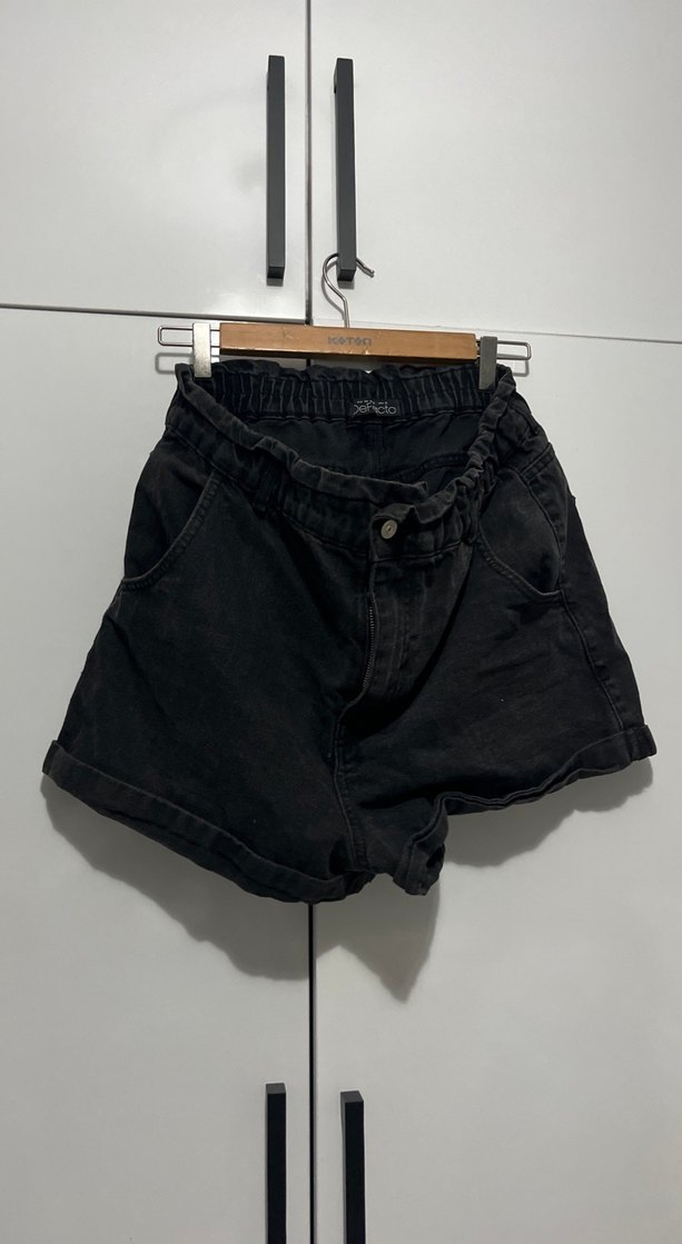 Siyah Beli Kemerli Bol Kesim Kot Şort