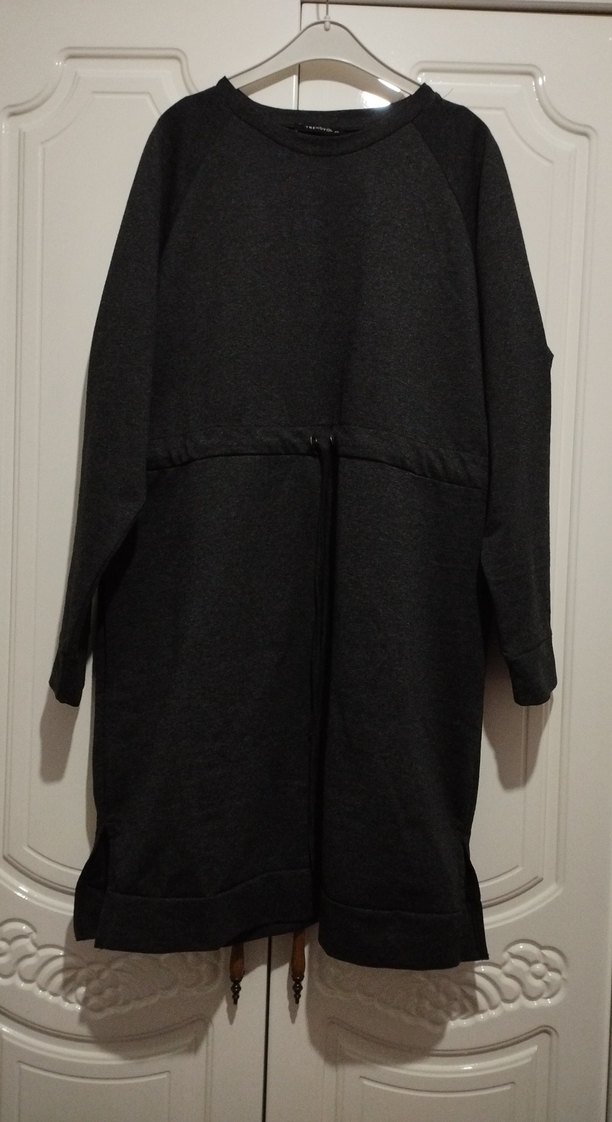 Siyah , yüksek yakalı ve uzun kollu, bol kesimdir. Kuşaklı yapısıyla rahat kullanım sağlar, sade ve desensizdir. Günlük kullanım için uygundur.