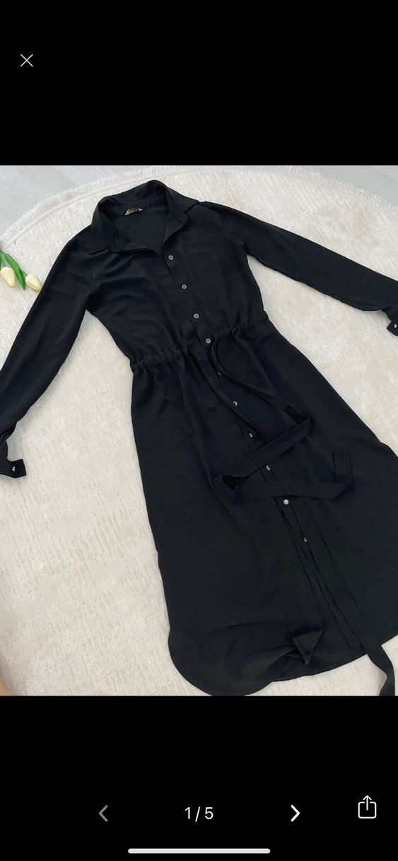 Siyah renk, uzun kollu, yakalı ve beli kuşaklı bu elbise, ofis ve gündelik gotik tarzlar için uygundur. Rahat kesim ve sentetik kumaştan üretilmiştir.