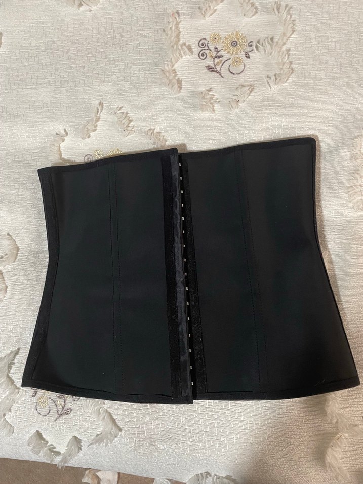 Siyah, beli saran ve midi boyda korses Desensiz ve düz yapısıyla destek sağlar.