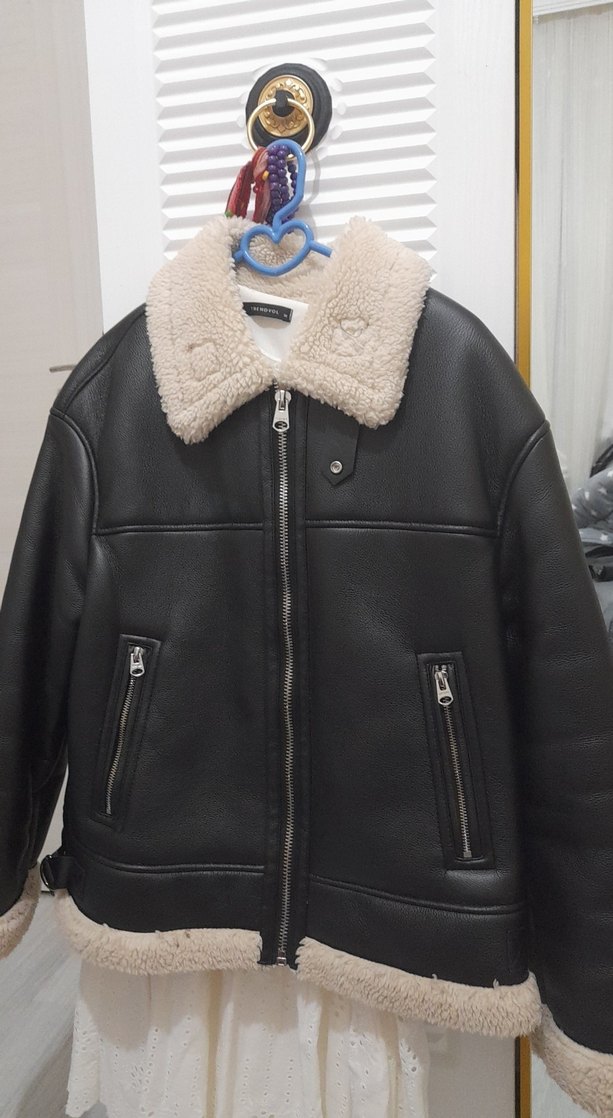 Kahverengi deri, kürklü yakalı ve fermuarlı cepli, dar kesim kadın ceket. Trendy casual sokak stili için uygun. bershka yeni aldım