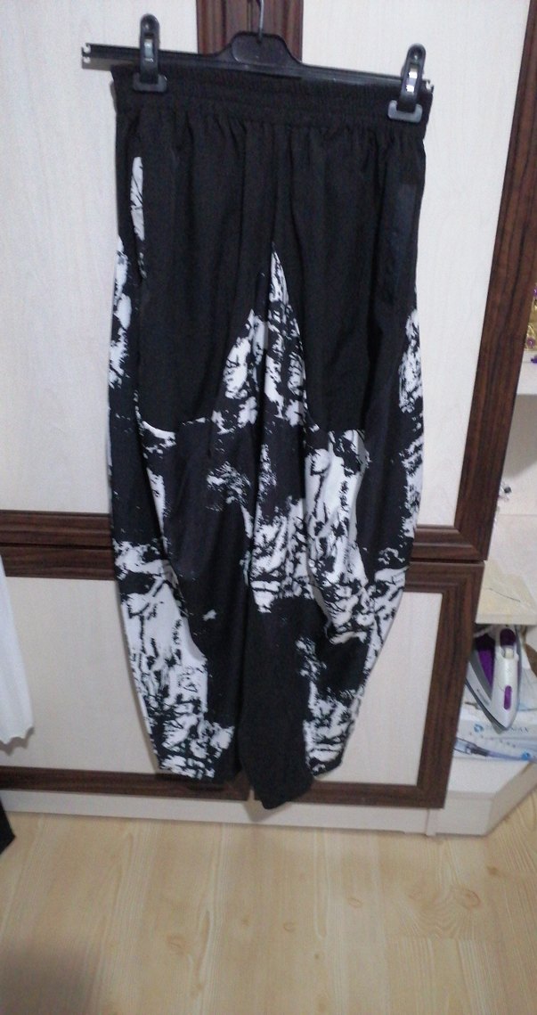 Siyah Beyaz Batik Desenli Kadın Şalvar Pantolon 44 beden 100 uz