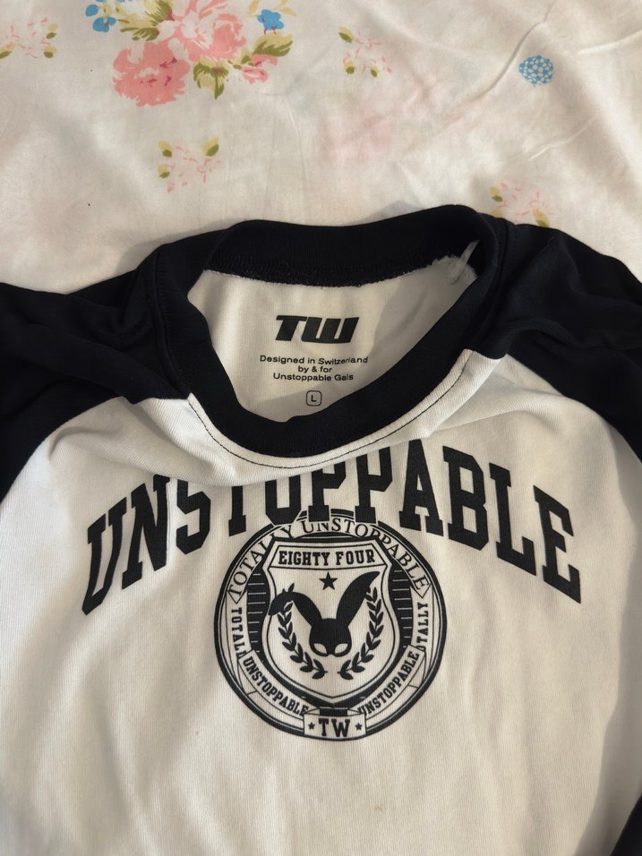 Beyaz ve gri renklerde, "UNSTOPPABLE" ve "EIGHTYFOUR" yazılı body. Yuvarlak yaka tasarıma sahiptir.