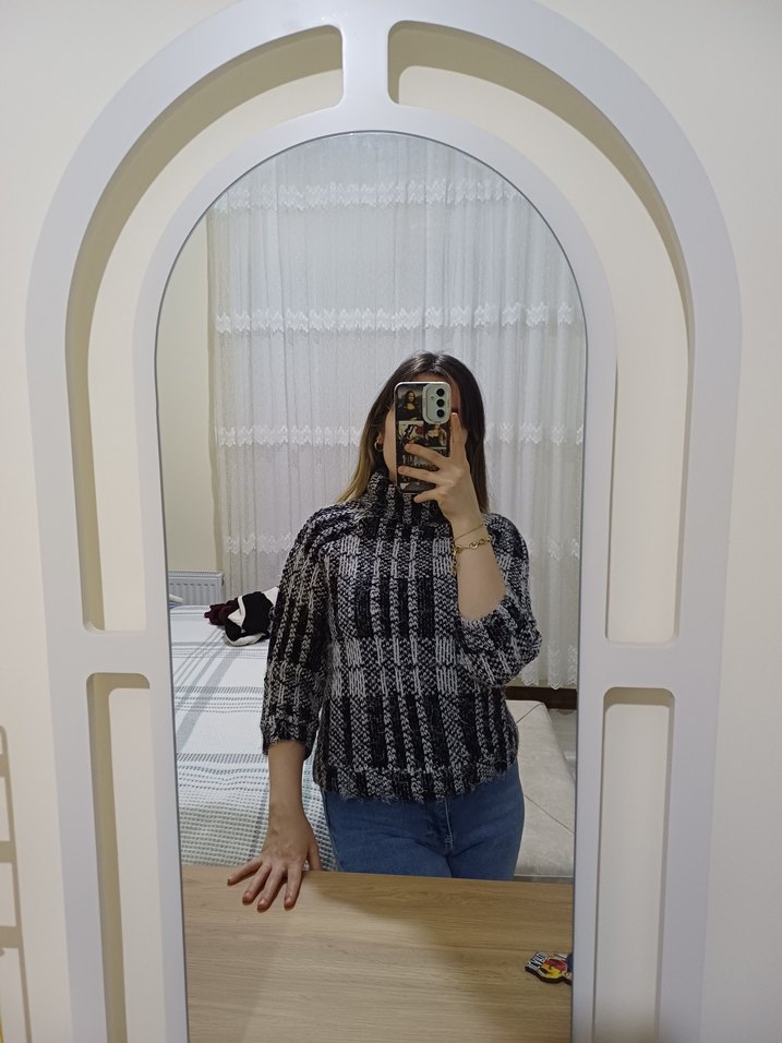Siyah- Beyaz Boğazlı Triko Kazak
