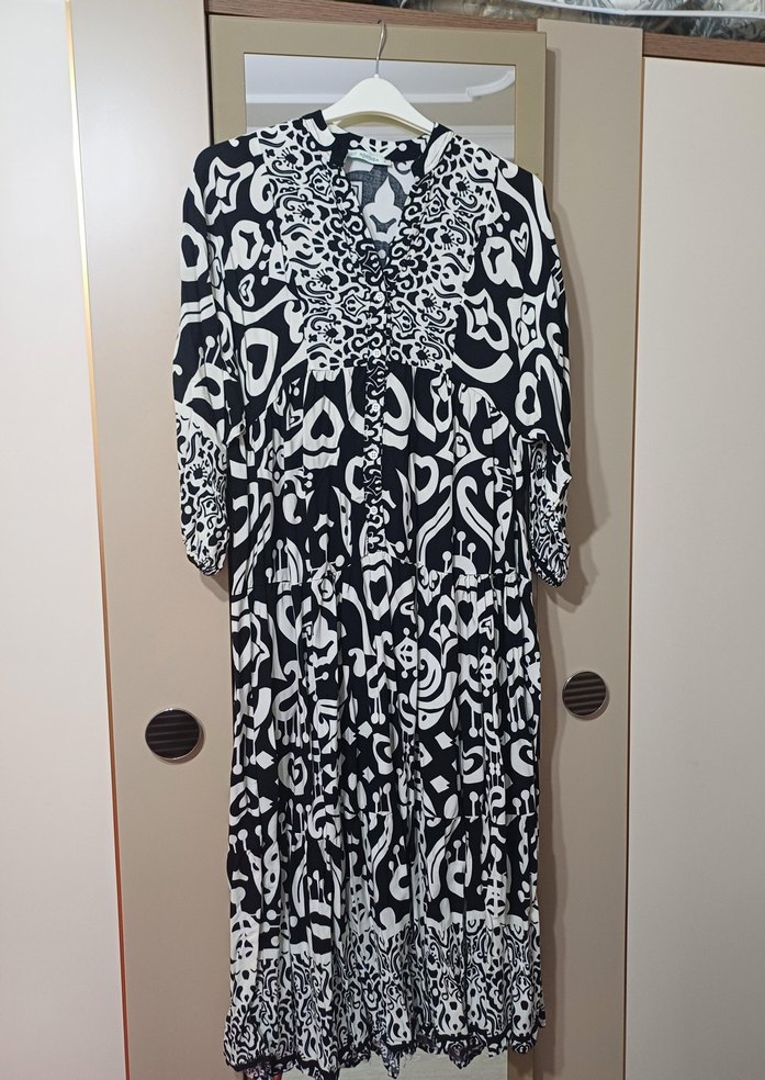 Siyah Beyaz Bohem Uzun Elbise 38 40 bedene olur