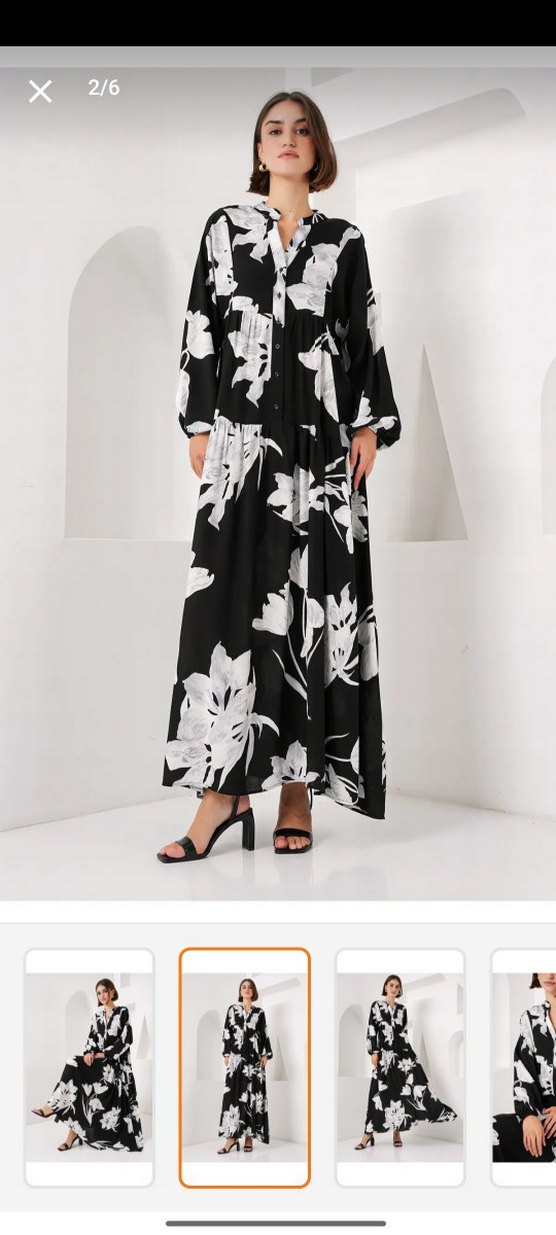 Ürünü hiç kullanmadım o yüzden fotoğrafı yok.. Bu uzun siyah elbise, çiçek desenli ve pileli detaylara sahip, bol kesimdir. V yakalı ve askılı kolludur, günlük kullanıma uygun trend bir görünümdür.