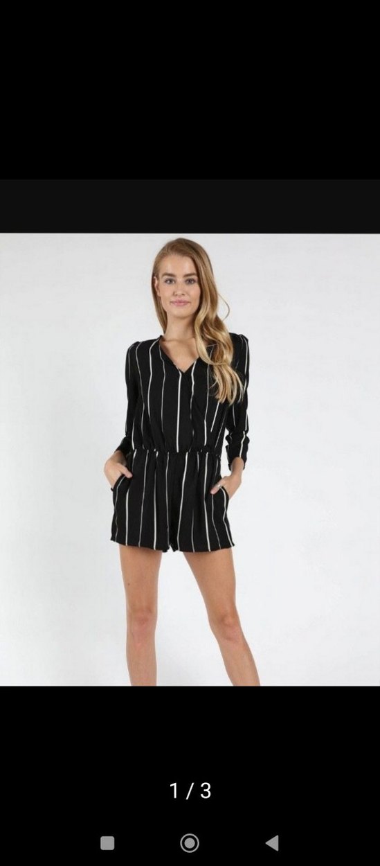 V yaka uzun kollu, siyah zebra desenli kadın kısa tulum. Rahat kesimi ile gündelik kullanıma uygundur.