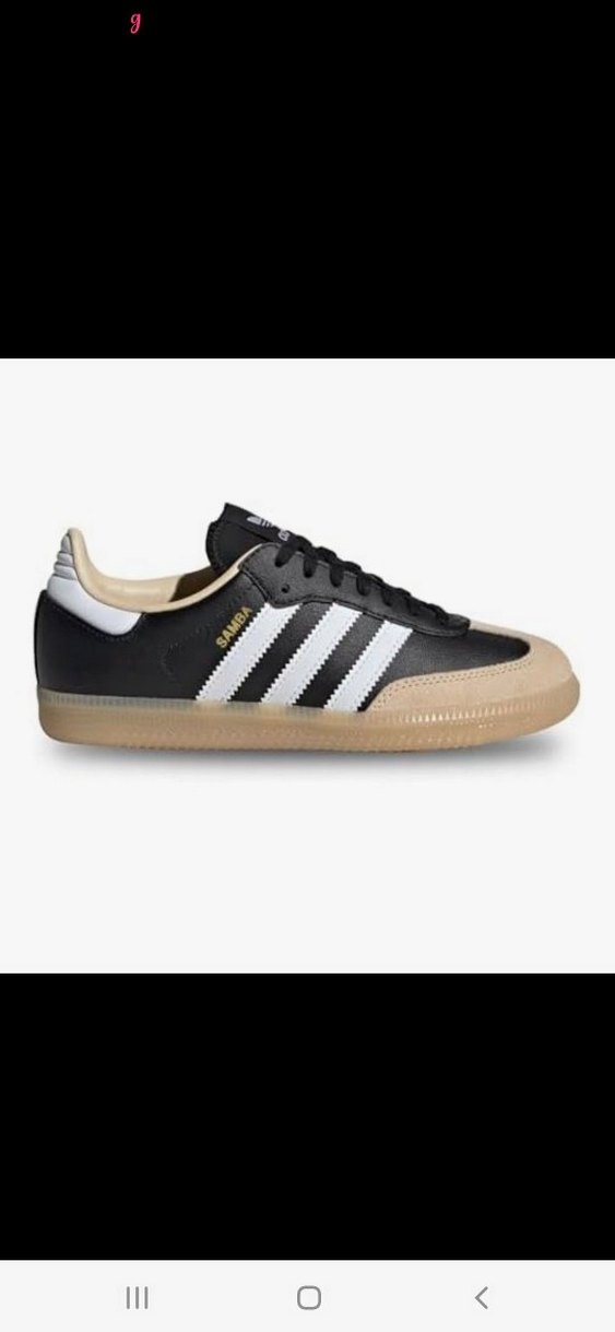 Siyah beyaz çizgili Adidas Samba sneakers, bağcıklı ve kauçuk tabanlı, rahat sokak stili için uygun. numaraları mevcut sorunuz