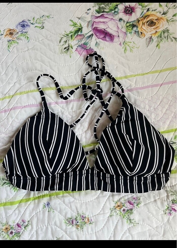 siyah beyaz çizgili bikini üstü