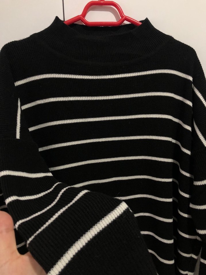 Siyah Beyaz Çizgili Boğazlı Kadın Kazak