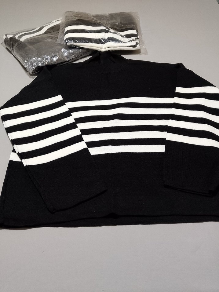 Siyah Beyaz Çizgili Boğazlı Triko Kazak