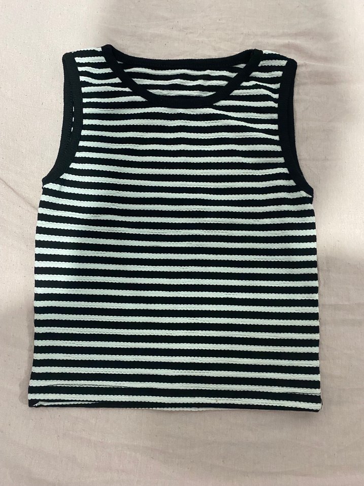 Siyah Beyaz Çizgili Crop