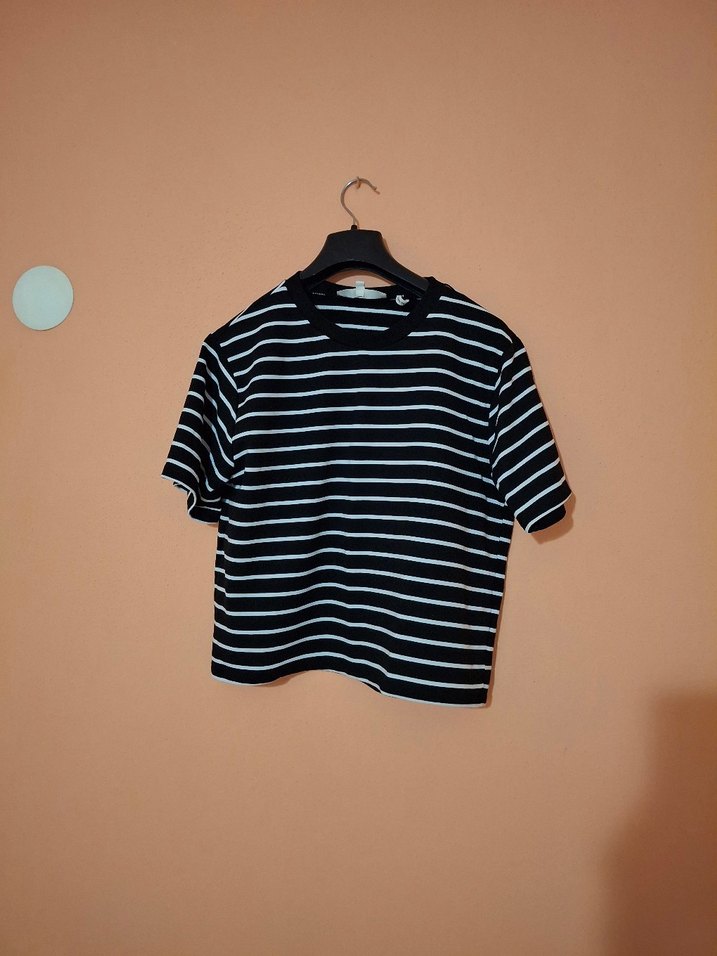 Siyah Beyaz Çizgili Kadın Tişört