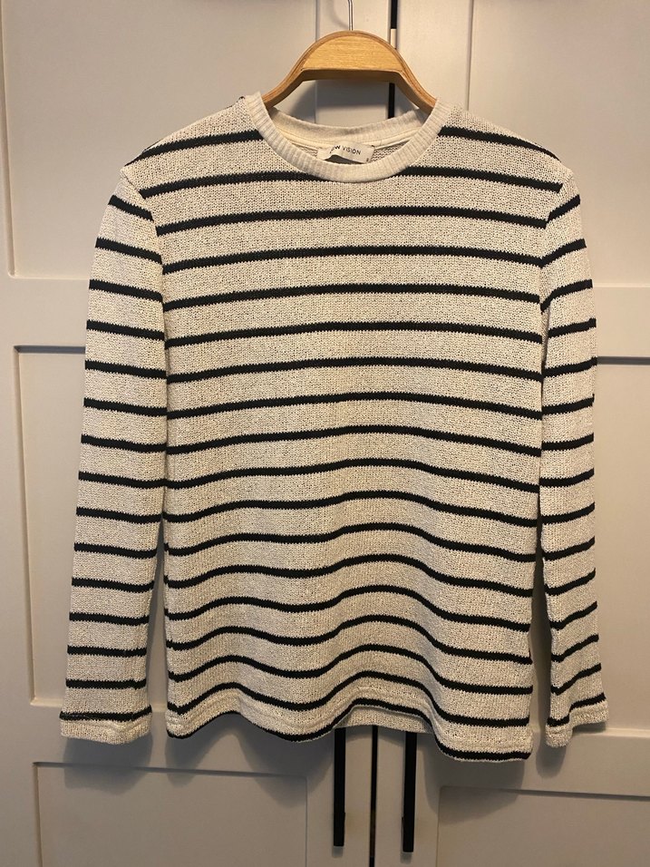 Kadınlar için uzun kollu, yuvarlak yakalı ve çizgili desenli triko.Günlük kullanıma uygundur. Sadece bir kaç kere giyildi kombinelerinizde çok kolay uyum sağlayabilirsiniz.
