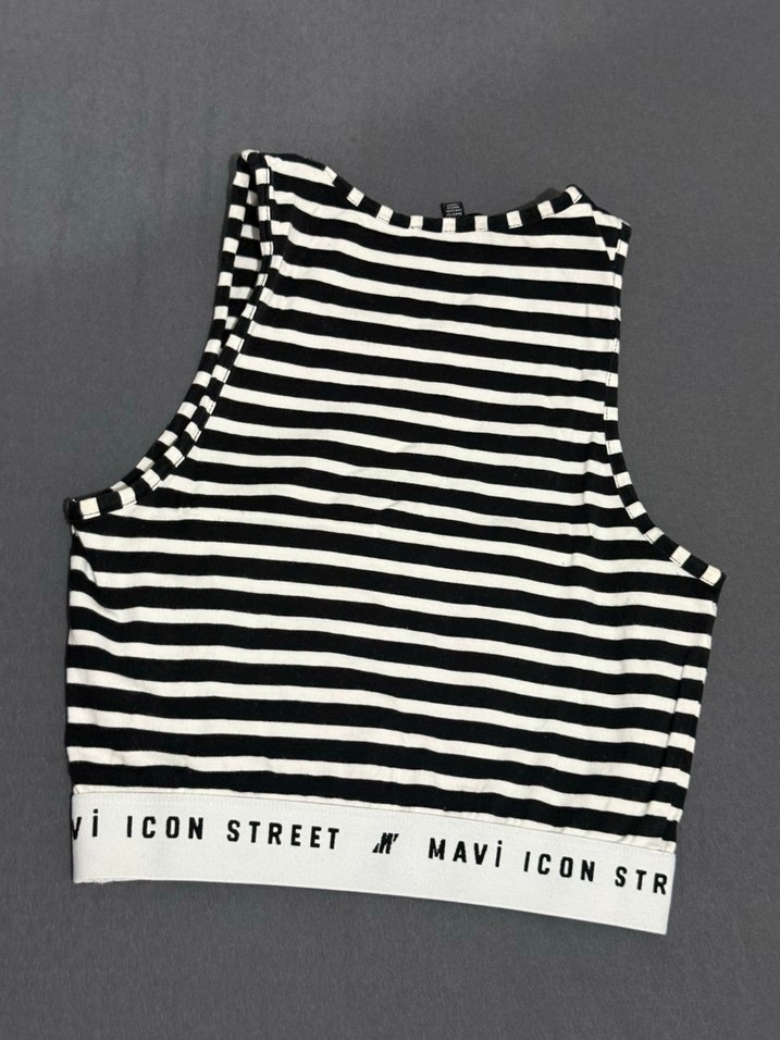 Siyah Beyaz Çizgili Kolsuz Crop Top