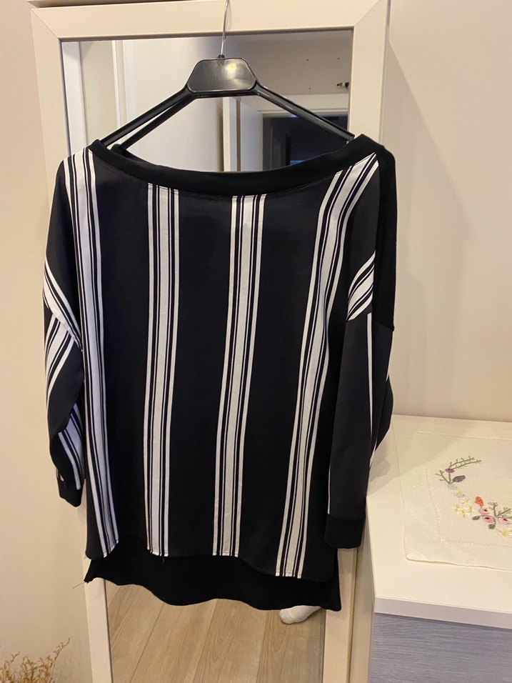 Siyah Beyaz Çizgili Salaş Kadın Bluz
