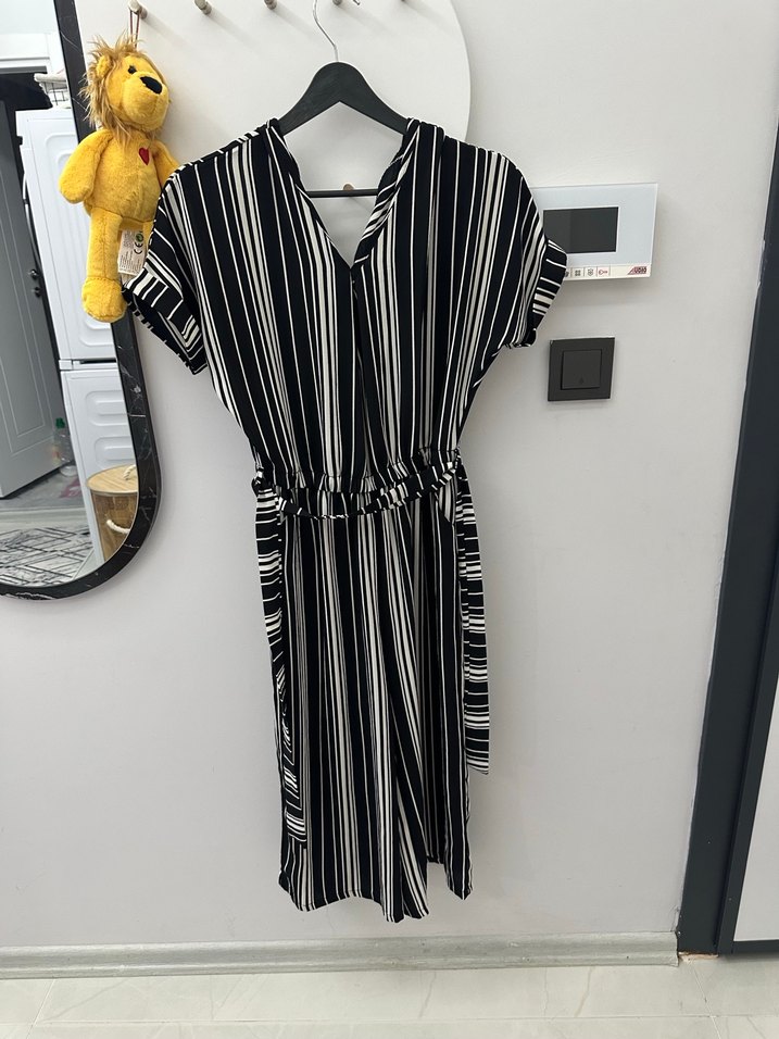 Siyah Beyaz Çizgili Salaş tulum