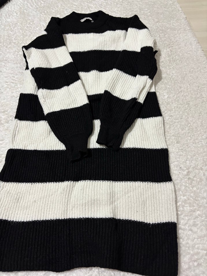 Siyah Beyaz Çizgili Triko Kadın tunik