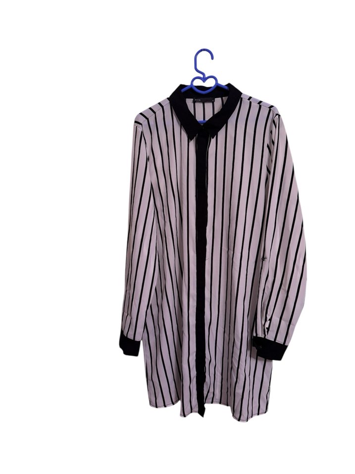 Siyah beyaz Çizgili Uzun Kollu Kadın Gömlek