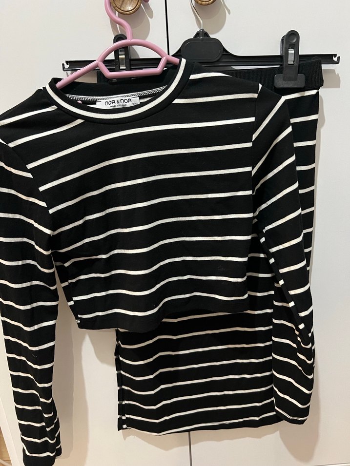 Pamuk kumaştan, uzun kollu ve bisiklet yaka, siyah beyaz çizgili, hamileler içinde uygun, rahat ve şık günlük tişört.
