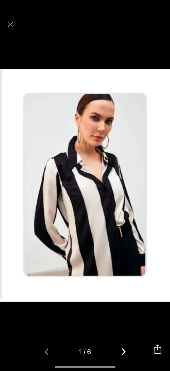 Siyah Beyaz Çizgili V Yaka Kadın Gömlek
