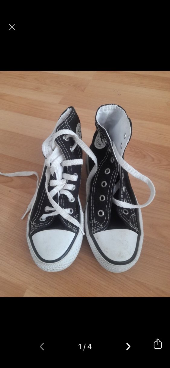 Düz tabanlı, elastik özellikli siyah beyaz çocuk converse ayakkabısı. Günlük kullanım için uygun, 31 numara