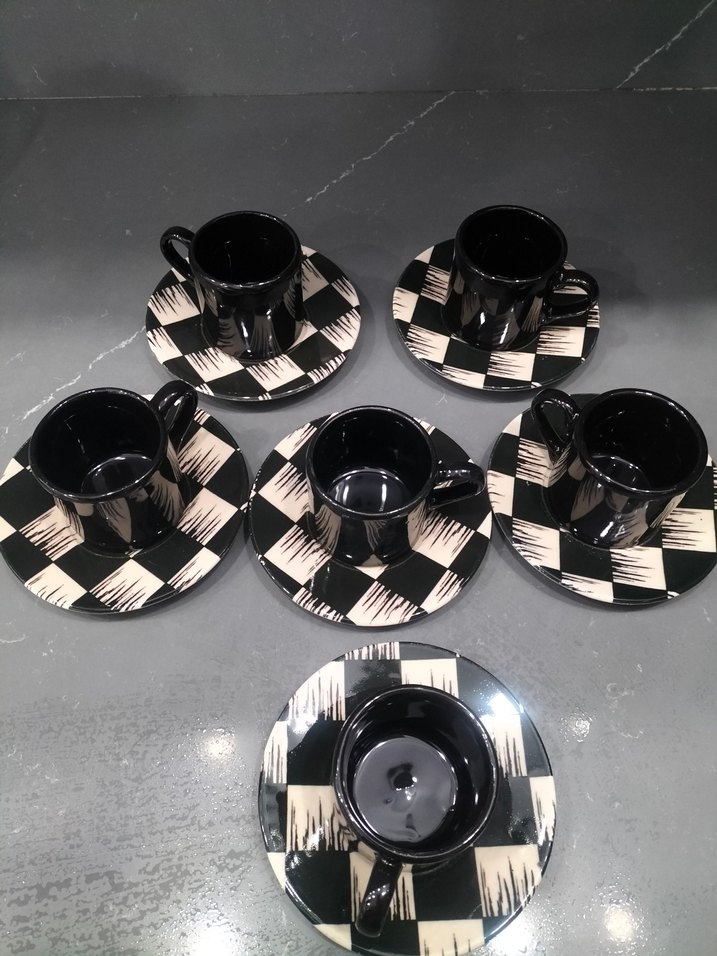 Siyah Beyaz Desenli 6'lı Fincan Takımı
