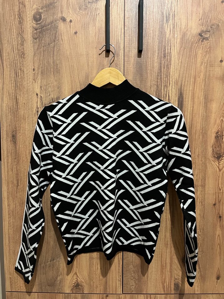 Siyah Beyaz Desenli Boğazlı Kadın Kazak