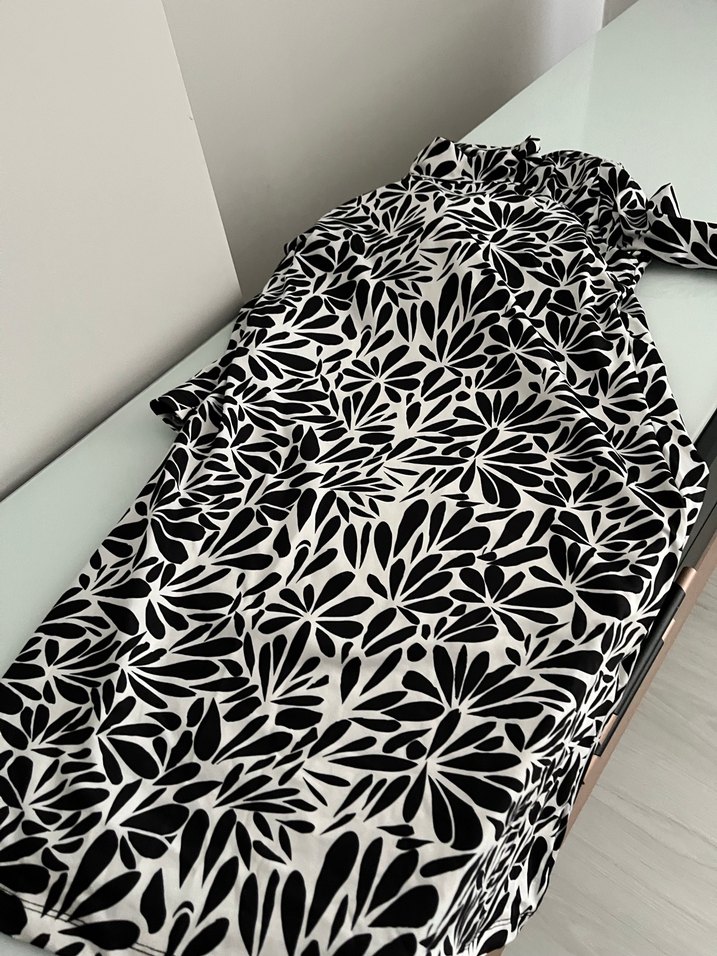 Uzun boylu haşema , siyah-beyaz desenli ve drapeli tasarıma sahiptir. Uzun kollu, kayık yaka ve regular fit kesimlidir. Bir kaç defa giyildi her hangi bir sorunu yoktur