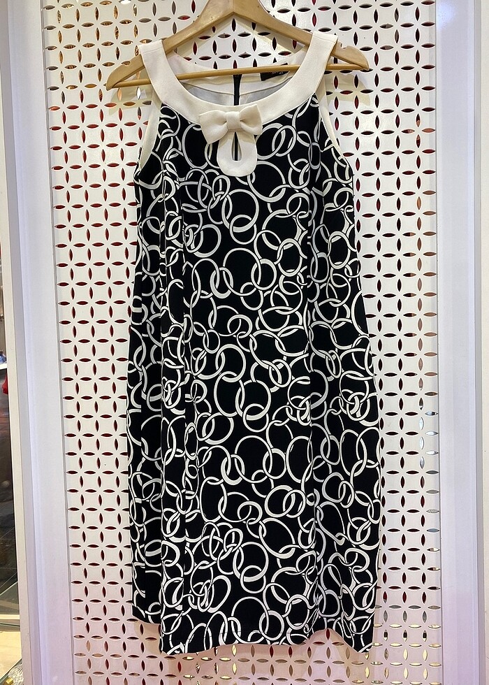 Siyah beyaz desenli içi astarlı kolsuz elbise