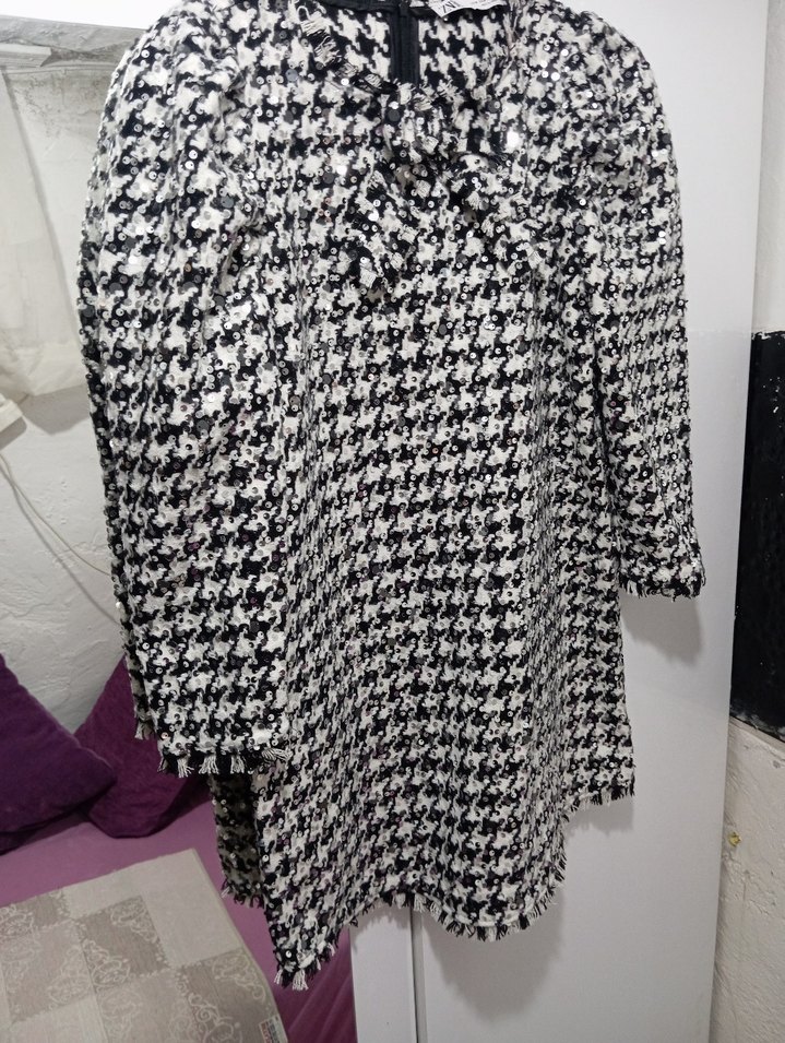 siyah beyaz Desenli Midi Kadın elbise veya tunik kulanilanilir