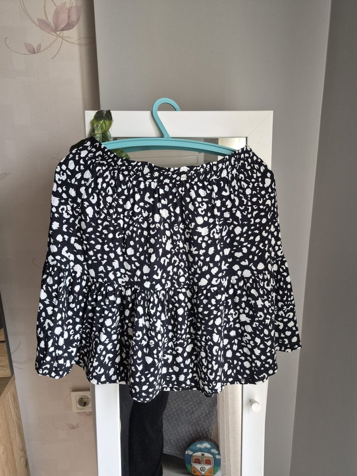 Siyah beyaz desenli, pamuklu kumaştan yapılmış, bol kesim ve fırfır detaylı mini hamile eteği. Günlük kullanım için uygun, rahat bir sokak stili sunar.