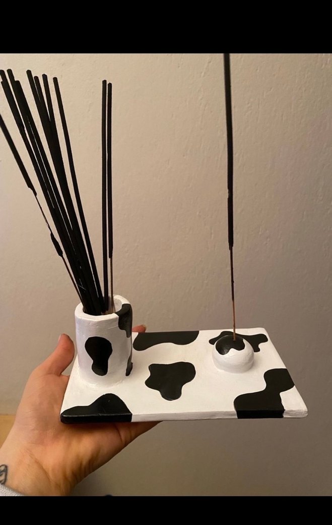 Siyah beyaz desenli seramik mumluk tütsülük