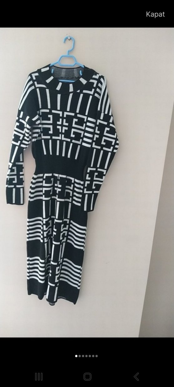Siyah Beyaz Desenli Uzun Triko Elbise