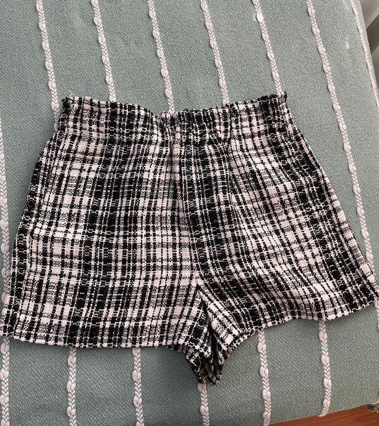 pilili siyah beyaz detaylı kadin mini şort, tekstil kumaştan, dış mekan sokak modasına uygun, Paris tarzı. Kumaşı biraz kalın kışın ve sonbahar havalarında giyilmelik bir kumaşa sahip.