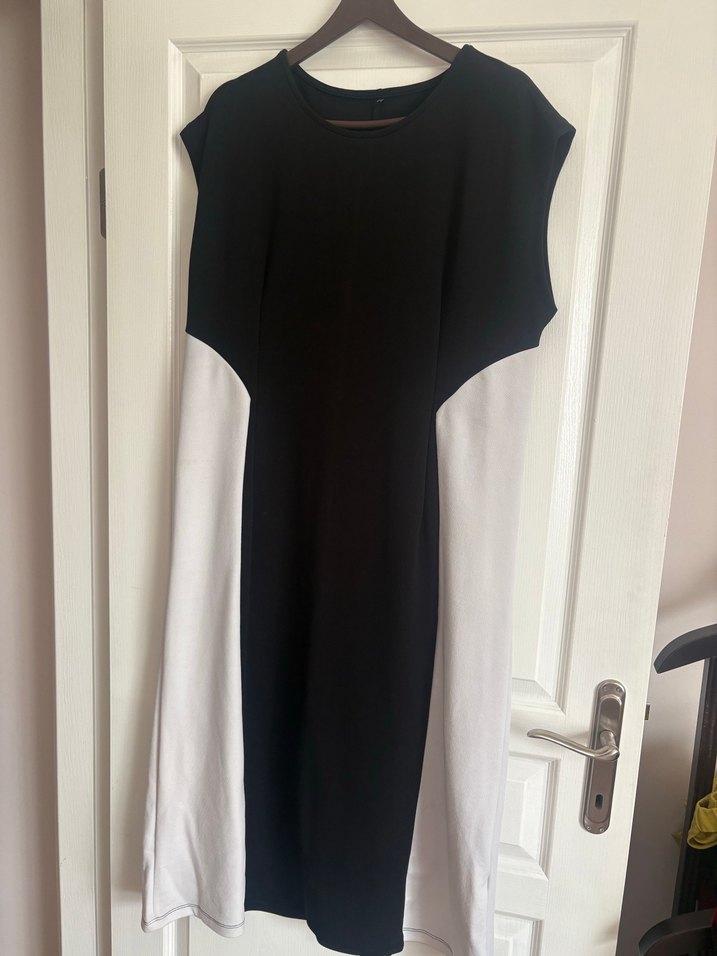 Siyah-Beyaz Drapeli Kolsuz Uzun Kalem Elbise