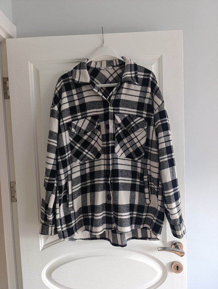 Düğmeli ve uzun kollu gri ekose kadın oduncu gömleği, notlu yaka ve rahat kesim ile günlük kullanıma uygundur. Yumuşak, sıcak kumaştan üretilmiştir.