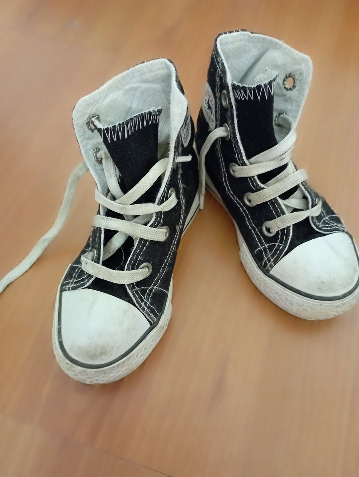 Siyah beyaz elastik bağcıklı, kauçuk tabanlı spor akkabı. Yüksek bilekli ve siyah tonlu detaylara sahip, rahat ve sokak stili uygun. 1-2 kere giyildi sorunsuz orjinal değildir
