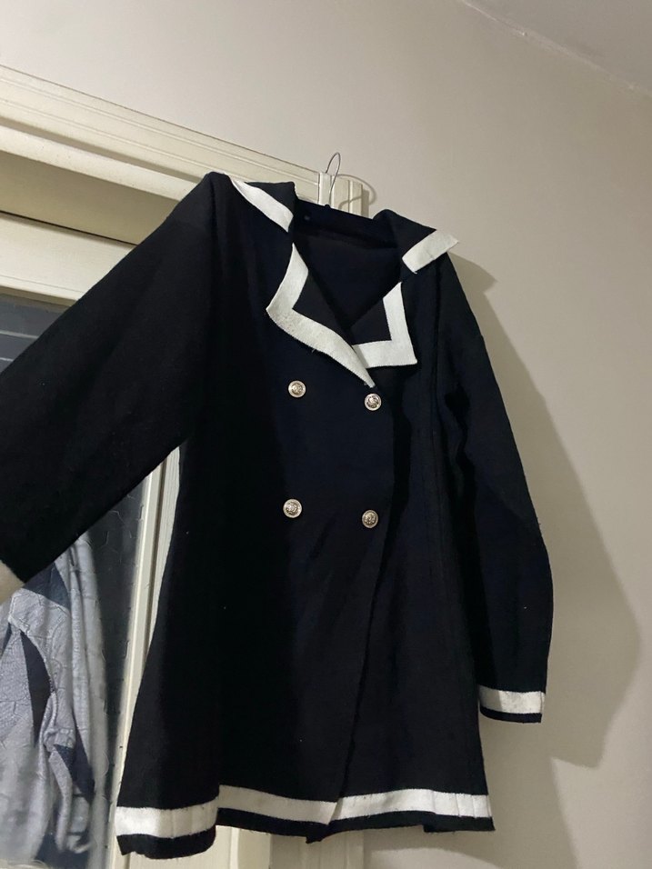 Siyah midi uzunlukta triko ikili takım , beyaz detaylı yakalı ve düğmeli ön kısmıyla. Uzun kollu, bol kesim normcore tarzında, günlük kullanıma uygun. Çok ufak tüylenme olmuştur o yüzden fiyatta çok indirim yaptım.(Pantolon boy 98 üst boy 80 )