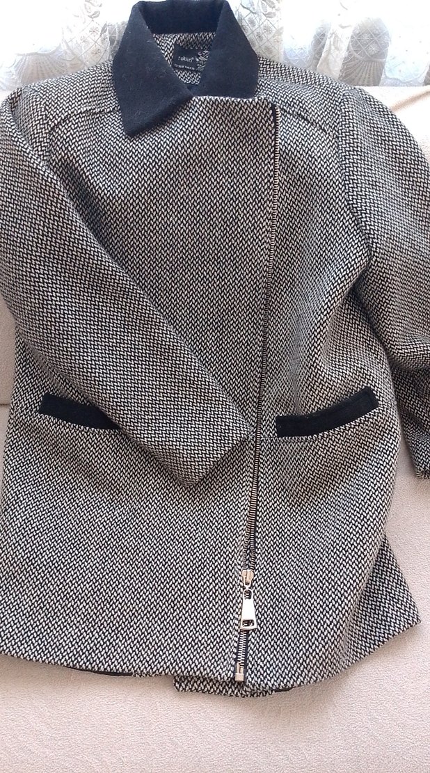 Siyah beyaz dokulu desene sahip kaban, ön cepleri ile dikkat çekiyor. Önden fermuarlı kapanışı bulunur. fermuar bozuktur
