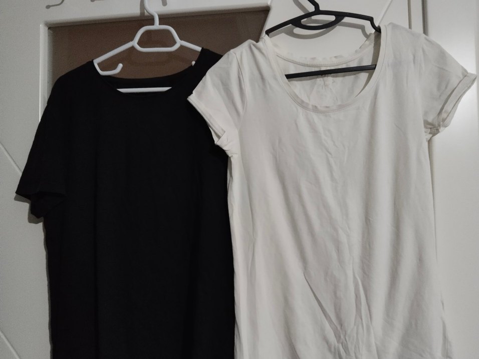 Pamuk kumaştan, kısa kollu ve bisiklet yaka, beyaz ve siyah renkte, sade ve fitted kesim kadın tişörtleri. Minimalist ve günlük kullanım için uygun.