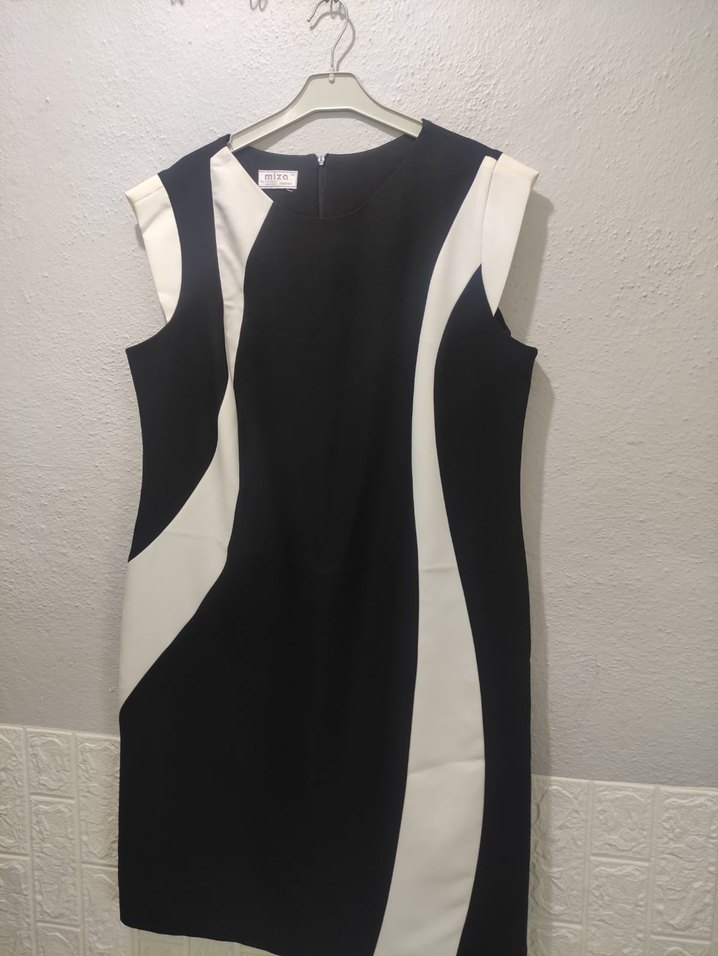 Siyah Beyaz Kemerli Midi Kalem Elbise