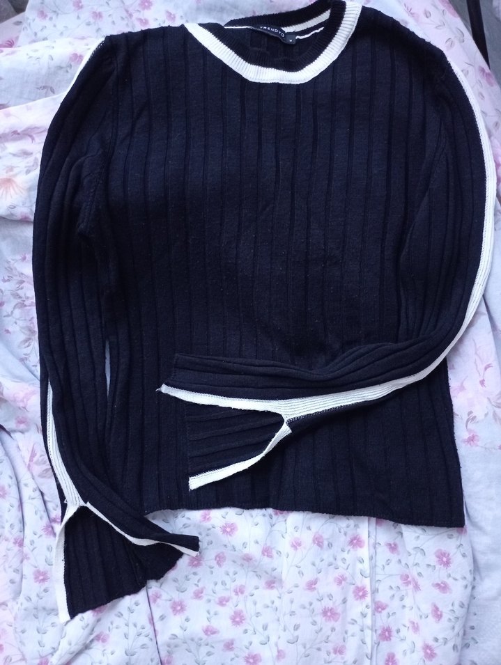 Siyah Beyaz Kenarlı İnce Triko Kadın Kazak