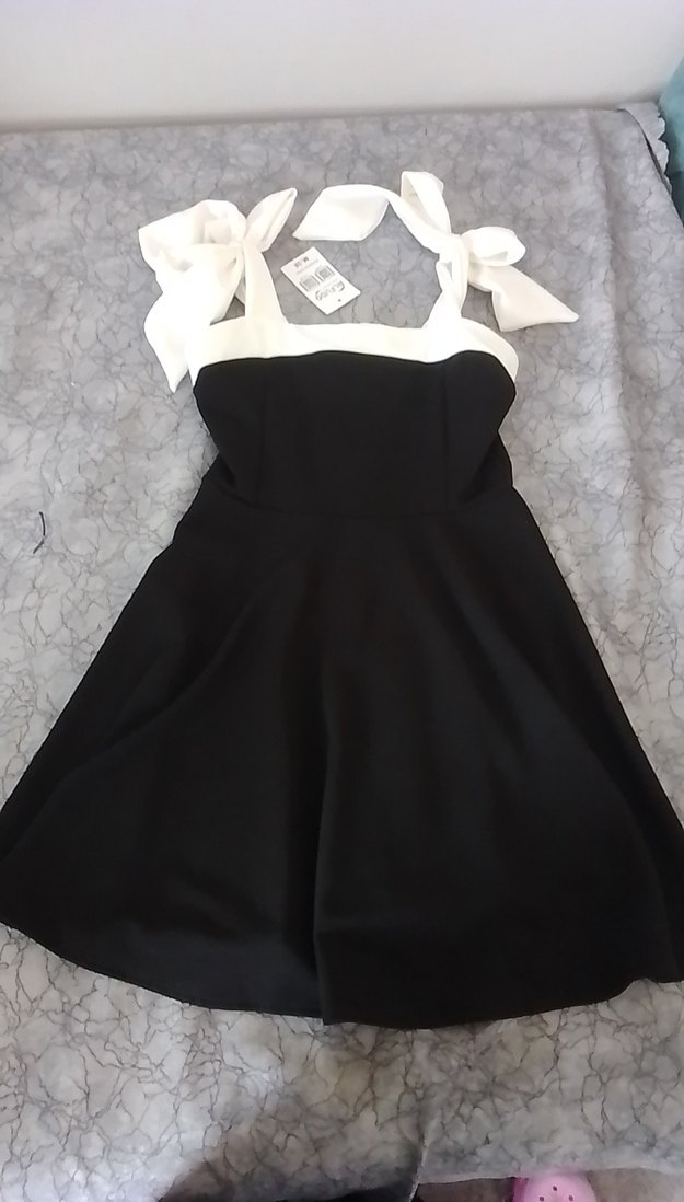 Siyah midi elbise, beyaz fiyonk detaylı askılar, straplez yaka ve fırfır süslemeleriyle klasik ve gotik tarzı bir araya getiriyor. kol askılarıyla beraber 72 santim sadece etek boyu ise 42 santimdir ürün hiç kullanılmamistir etiketi üzerindedir pazarlık payı vardır 800 TL'den almıstım şimdi giyemdim ve yarı fiyatına göre satıyorum