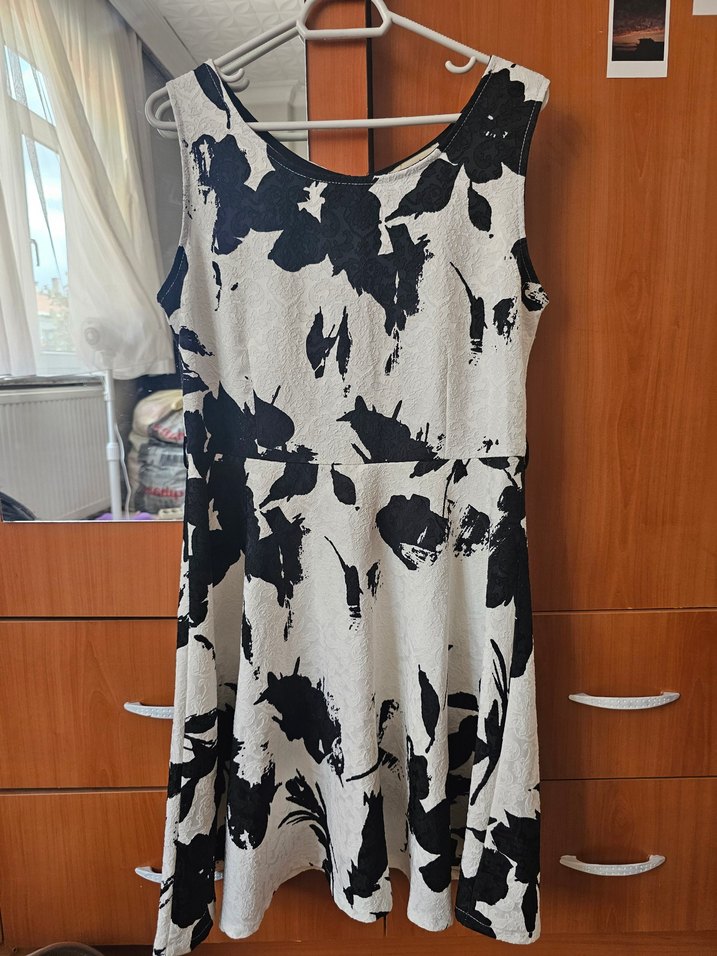 Siyah Beyaz Midi Desenli Kadın Elbise