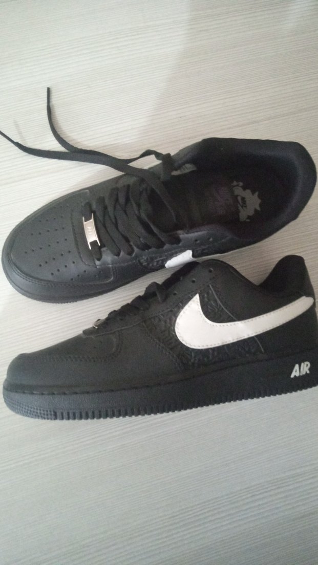 Siyah beyaz logo detaylı Nike Air Erkek spor ayakkabısı, bağcıklı ve kauçuk tabanlı. Spor ve günlük sokak tarzına uygun.