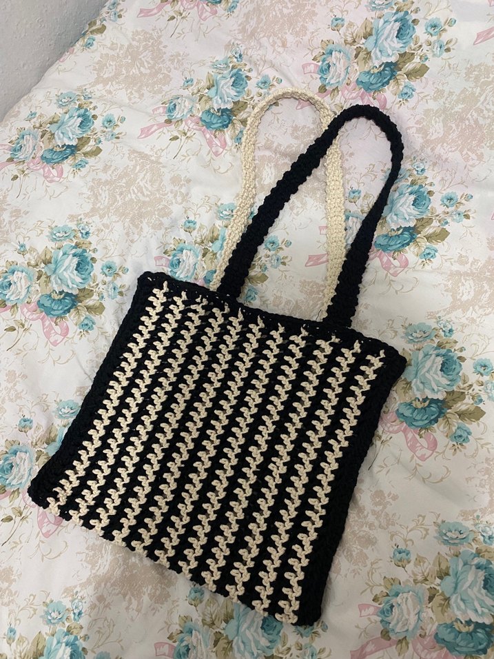 Siyah ve beyaz örgü zebra desenli, el örgüsüdür