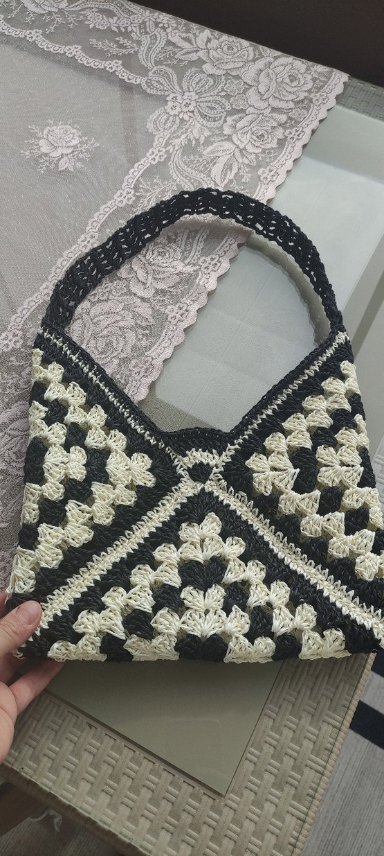beyaz örgü kadın çanta, bohem tarz için uygun, günlük kullanıma ideal.